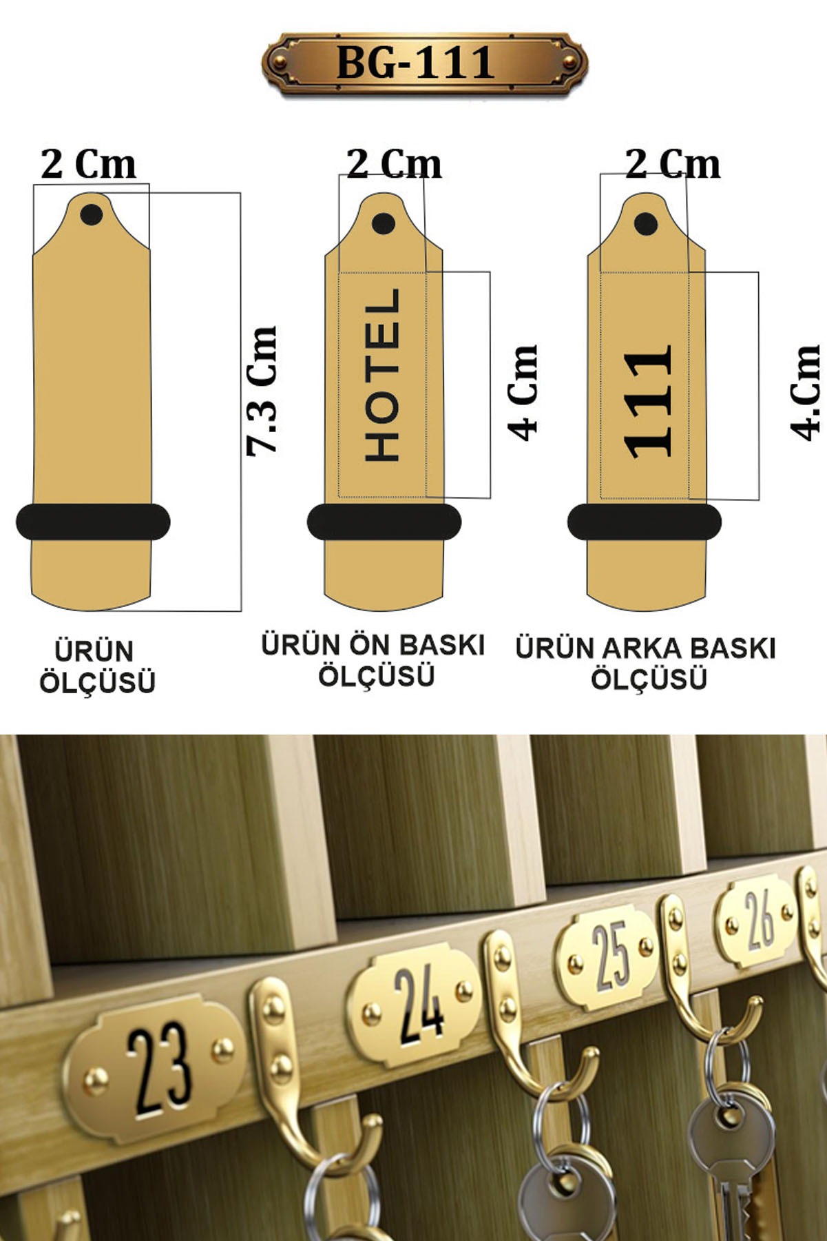 - Bir yüzüne otel ismi, diğerine oda numarası yazılır.