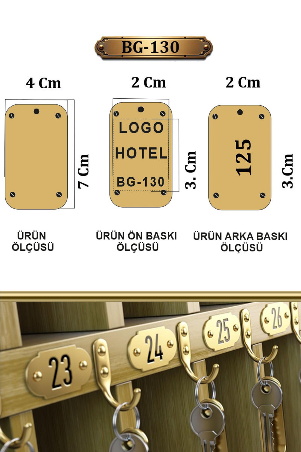 - Bir yüzüne otel ismi, diğerine oda numarası yazılır.